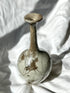 Raku fired wheel-thrown bottleneck vessel with a white glossy crackled glaze.