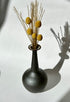 Wheel-thrown and hand-altered black clay flared bottleneck vessel with matte white glazed mouth. Fired to Cone 10 (2345 degrees Fahrenheit).