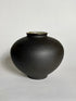 Beautiful black clay vase with mouth and interior glazed in chun. Made from wheel-thrown stoneware, this piece serves as a testament to the timeless beauty of heirloom pottery, bringing an organic serenity to your dearest spaces.