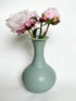Wheel-thrown and hand-carved long-neck vase glazed in soft blue beautifully melds traditional craft with modern aesthetics. Each organic curve and subtle variation in form makes it not just a vessel for your favorite flowers, but a testament to the timeless beauty of heirloom pottery, bringing an organic serenity to your dearest spaces.