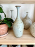Elegant wheel-thrown speckled blue bottleneck handmade with stoneware. This piece serves as a testament to the timeless beauty of heirloom pottery, bringing an organic serenity to your dearest spaces.