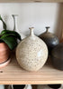Wheel-thrown speckled bottleneck vessel glazed in warm glossy white. Handmade from stoneware, this piece serves as a testament to the timeless beauty of heirloom pottery, bringing an organic serenity to your dearest spaces.