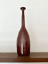 Tall wheel-thrown bottle neck vessel glazed in a beautiful glossy burnt umber. Handmade from dark stoneware, this piece serves as a testament to the timeless beauty of heirloom pottery, bringing an organic serenity to your dearest spaces.